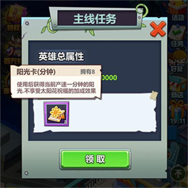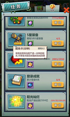 此外完成游戏下方的主线任务也有机会获得阳光卡。