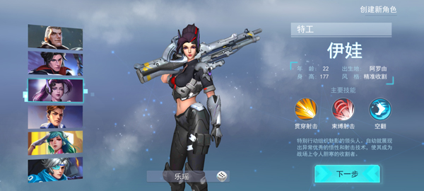 2、接着创建新角色,选择一个英雄,并取个昵称;
