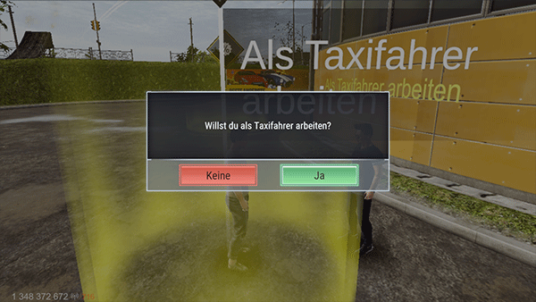 3、进入黄圈后会弹出确认窗口,点击“ja”即可正式成为出租车司机