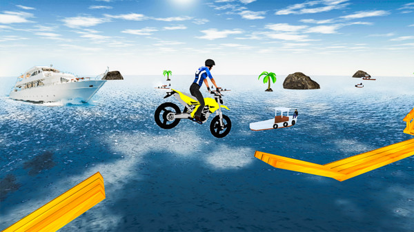 2. 创意十足的赛道设计:赛道巧妙融合飞机残骸、巨型集装箱、远洋轮船甲板与悬空木板等非常规元素,构建出既荒诞又真实的极限环境,带来前所未有的骑行刺激感。